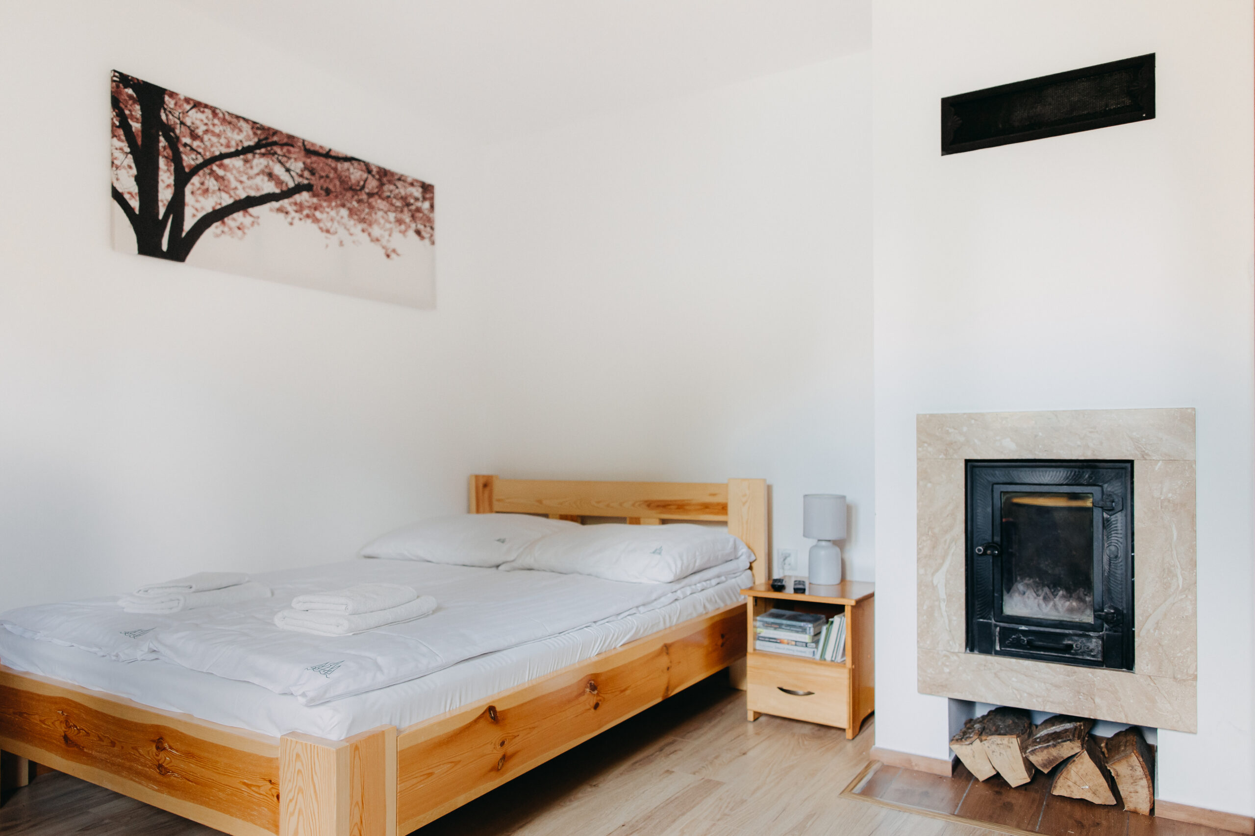 a w jednym z nich dodatkowo znajduje się rozkładany fotel kominek na chłodniejsze wieczory